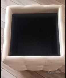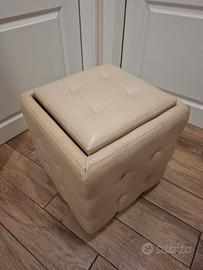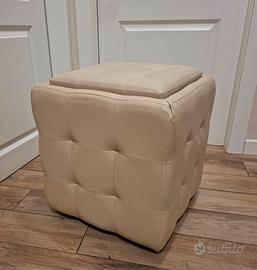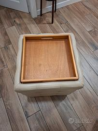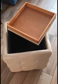 puff contenitore in ottime condizioni con vano contenitore e vassoio in legno.. struttura molto solida color panna semil pelle trapuntata
