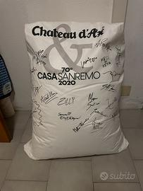 puff di sanremo fatto firmare da tutti i partecipanti per la 70esima edizione, mai usato é nuovo e inoltre é della Chateau D’Ax