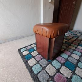 bello e comodo puff in legno massello e vera pelle