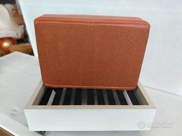 Puff laccato bianco con seduta in pelle vintage anni 70