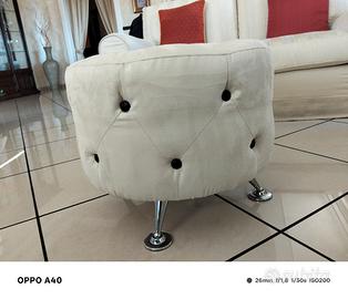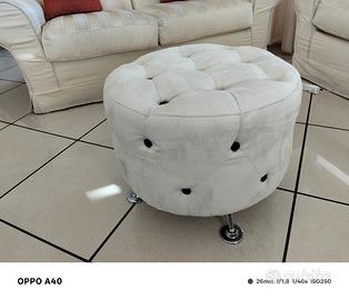 puffo rivestimento tessuto in microfibra colore panna con bottoni in risalto testa di moro misure Diametro 50 H 40 piedi in acciaio cromato