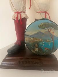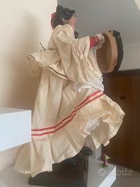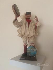 Pulcinella uomo e donna con occhi in vetro piedi in porcellana e mani e viso in legno e vestiti in stoffa fatti artigianalmente da artigiani napoletano in san gregorio armeno Napoli con scatole originali altezza 42 cm