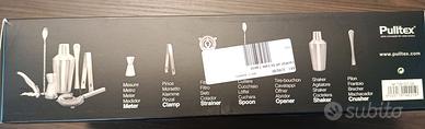 Il set è composto da: Shaker 500 Ml Strainer Pestello Cucchiaio per miscelare Jigger 2/4 Cl Pinze Cavatappi