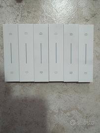 Vendo, a causa di errore d’acquisto, pulsanti e cover (colore bianco) per tapparelle elettriche della serie Living Now della Bticino. Nello specifico: - 5 Pulsanti doppio 10 A 250 Va.c. 1 P (NO) + 1 P (NO) interbloccato per tapparelle, non illuminabile - 1 modulo. CODICE: K4037N - 6 Cover per pulsante interbloccato e comando tapparelle. CODICE: KW05 Ci tengo a precisare che gli articoli sono stati acquistati, montati e poi sostituiti dopo meno di un mese in quanto pensavo fossero la versione connessa per l’utilizzo domotico.