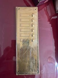 Vendo come da titolo pulsantiera in ottone con cornice lucida nuova a 6 pulsanti. Prodotto nuovo mai usato. Misure: 13x38 cm