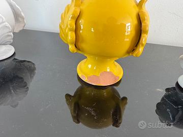 Pumi pugliesi di varie dimensioni, da 17 cm a 7 cm di altezza. Il pumo giallo e’ scheggiato sul retro.