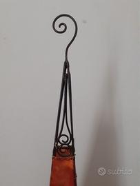 Punto luce in pelle e ferro battuto. colore rosso e beige.Antico