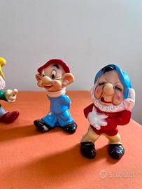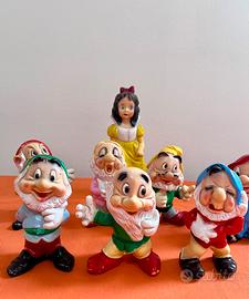 Pupazzi Walt Disney Ledra di Gomma Anni 60 Biancaneve e i sette nani. Biancaneve alta 25,5 cm Nani 15 cm No spedizione ritiro a carico dell’acquirente