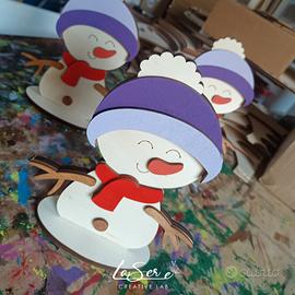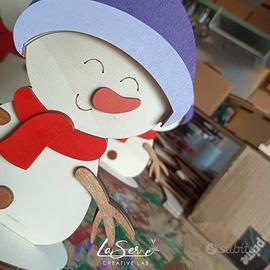 Pupazzo di neve versione viola realizzato da me in legno, altezza 24cm. Possibilità di aggiungere nome o testo sulla base per personalizzarlo.