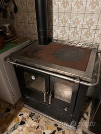 Putage a legna Rizzoli, forno e bracere a vista, con qualche segno di usura, non utilizzata più da anni. A parte qualcje difetto estetico la stufa funziona perfettamente.