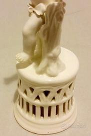 Bellissimo oggetto in ceramica estense, raffigurante un putto con corona di fiori, finemente lavorato, su base traforata, anni '60. All'interno della base, si puo' osservare la firma della casa produttrice,