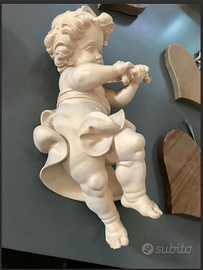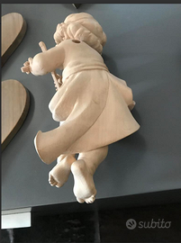 Causa trasloco, svendo: PREGIATO addobbo/statua da parete "PUTTO che suona il violino" o CHERUBINO realizzato artigianalmente, oggetto d'arte della secolare tradizione AMPEZZANA/TIROLESE. Misura 30 cm. CONDIZIONI: come nuovo. Contestualizzazione ideale CHALET/BAITA montagna.