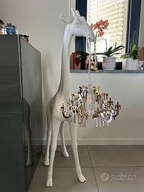 Una piccola giraffa (altezza 100 cm) che tiene in bocca un lampadario in stile classico:
