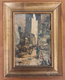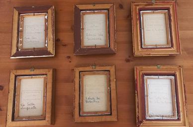 Set di sei stampe o dipinti raffiguranti scene storiche di "Roma sparita", con riproduzione delle opere pittoresche di Ettore Roesler Franz. Si tratta di un insieme di 6 quadretti incorniciati in stile classico dorato. I soggetti rappresentano scorci architettonici e strade di epoche passate. Questi oggetti sono tipici elementi decorativi d'epoca o riproduzioni artistiche.