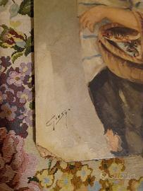 quadretti in legno anni 60/70 firmati Giusy sono scheggiati nel lato ma il resto è in ottime condizioni misure 20x30 più o meno.