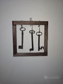 Quadretti cornice artigianale in legno 21x21 con chiavi antiche molto rare adatte x ogni tipo di arredamento