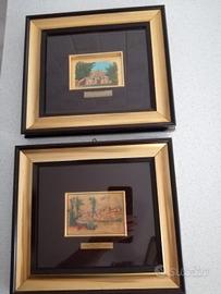quadretti raffigurante il castello di Manfredonia e la basilica di Siponto su foglia oro