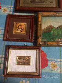 quadretti con cornice dorata e cornice in legno di bambu raffiguranti paesaggi naturali, città italiane e veliero spagnolo