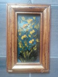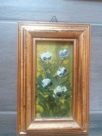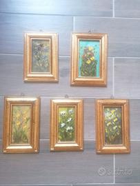 5 quadretti dipinti a mano raffiguranti fiori. Misura 12,5x20