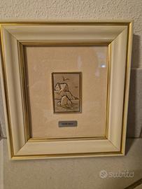 3 quadretti Pierre: bassorilievo in argento 925‰ con riporti in oro zecchino ed etichetta con certificato di garanzia 6,5x4,5. Cornice esterna 20x17,5. €25 l’uno €65 tutti