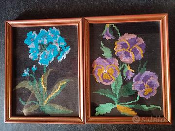 Quadretti d'arredo - Azteco mis-25x20 cm - Indiano mis.25x20 - Paesaggio 25x20 cm - Fiori ricamati a mano mis.21x27 cm - Le 4 stagioni personificate su lastra d'argento mis.18x20 - Ritratto di donna mis.30x40 cm - Tuttti in buone condizioni - a scelta a 7 euro l'uno