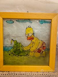 Quadretti decorativi dipinti a mano con una scena di Homer Simpson.