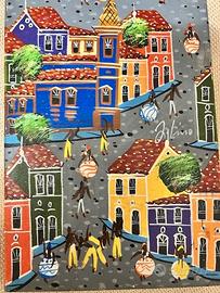 Tre bellissimi quadri olio su tela Brasiliani provenienti dal mercato dell'artigianato di Salvador de Bahia. Rispecchiano lo stile Brasiliano che richiama vita sociale, allegria, caratterizzati da colori accesi, vivi. Le dimensioni sono di 30x40 cm il piu grande, 40x20 cm quello di dimensioni medie e 40x10 cm il più piccolo. Sono originali e vendo anche separatamente. Disponibile alla spedizione.