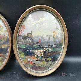 QUADRETTI OVALI COPPIA DIPINTI