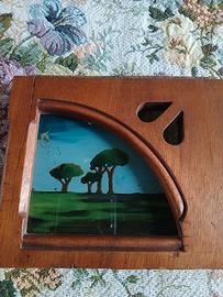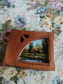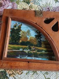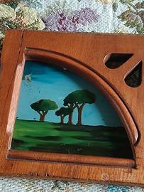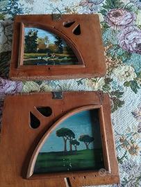 due quadretti legno dipinti su vetro 1 originale dell'epoca (cipressi) 1 dipinto a mano su vetro recente dimensioni cm13x 16.5