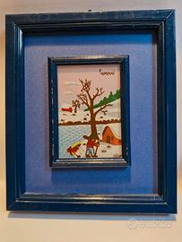 N.2 quadretti pittore Jugoslavo Prokovic, tecnica pittura su vetro con certificato autentica sul retro , tema invernale. Misura cornice esterna cm. 17 x 20.