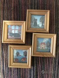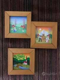 N.3 quadretti soggetto BICICLETTA cm 15x15,5 N.3 quadretti soggetto campagna cm 8x8 N.4 quadretti soggetto gatti e casette cm 5x5