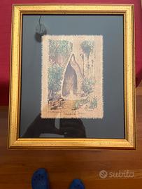 Tre luoghi di Siracusa disegnati a mano su carta di papiro originale come da certificato. Le immagini rappresentano il Teatro Greco, la Fonte Aretusa e l’Orecchio di Dionisio.