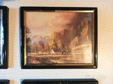 Quattro quadretti con uno stile terribile e super kitsch. Hanno rifiniture interne color oro che riprendono sapientemente la cornicetta, ottime per abbruttire un posto con gusto.