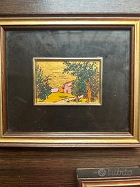 3 quadretti vintage dipinti a mano su foglia d’oro Cm 14x12 Creazioni laboratorio artistico Silverpiù