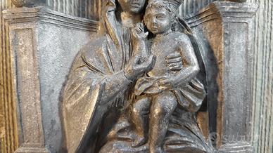 QUADRETTO ANTICO SCULTURA MADONNA CON BAMBINO Gesù