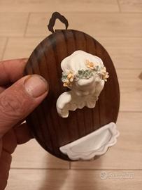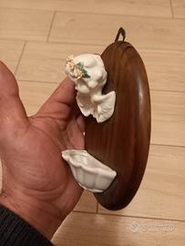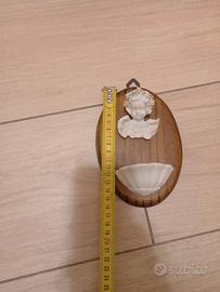 quadretto aquasantiera in legno e ceramica