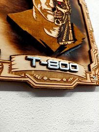 Quadretto artigianale multilivello in legno fatto a mano, pezzo unico Tecnica: laser e pirografo. Soggetto ispirato al T-800 dal film Terminator. 20x27x1cm circa Realizzo quadretti come questo, personalizzati su commissione.