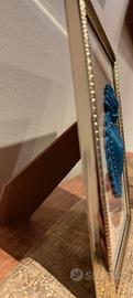 il materiale è plastica, il soggetto è in 3d applicato sul vetrino e lo sfondo retrostante può essere sostituito.