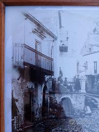 bellissimo quadretto con cornice in legno con vetro stampa di una antica foto di una via di San fratello 32,5 x 23,5