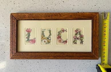 Scritta "Luca" su cartoncino lavorato a sbalzo. Misure 25x13 cm. Nuovo, mai appeso.