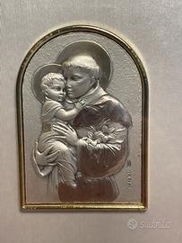 Quadretto di San Antonio in argento cornice legno