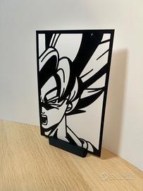 Vendo quadretto raffigurante Goku super sayan realizzato con stampante 3D bicolore, con pratico supporto da scrivania incluso.