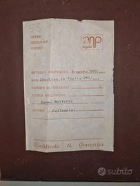 Quadretto completo di cornice in legno color argento realizzato in argento 999 e foglia di oro zecchino 985 rappresentante il Duomo di Molfetta BA Opera originale studio Mp argenti, autore Pellegrini. Completo di certificato di garanzia sul retro. Cm 17 x 22 circa.