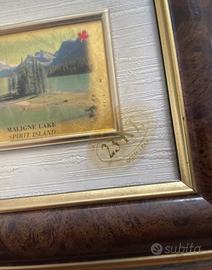 Bellissimo quadretto con foglia d'oro 23kt raffigurante il Maligne Lake, Spirit Island.