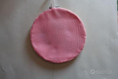un quadretto ricamato a mano punto croce del diametro 17 cm con cornice in legno