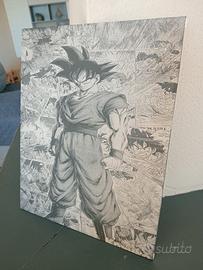 Bellissimo quadretto realizzato con incisione laser di alta precisione, raffigurante Goku personaggio di Dragon Ball 🖤 Colori neutri bianco e nero 📐 Dimensioni 24x30 Cm 🎁 Ottima idea regalo