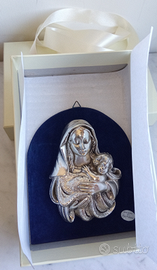 Quadretto Madonna con Bambino, misure cm 25×17.5. Nuovo mai usato, piccole pecche di fabbrica (foto 3+4). Completo di scatola e nastrino.
