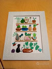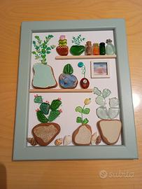 Quadretti naif, artigianali realizzati con vetrini e piastrelline di mare, conchiglie ed altri decori di fantasia, in cornici nuove di legno bianca o verde acqua cm 20 x 24 , la richiesta è di euro 12 l'uno,realizzo anche su ordinazione ,prima di acquistare contattami per sapere quale è ancora disponibile