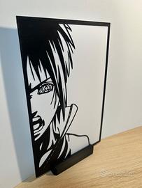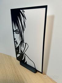 Vendo quadretto raffigurante Sasuke Uchiha realizzato con stampante 3D bicolore, con pratico supporto da scrivania incluso.
