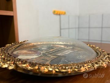 Quadretto ovale in plastica decorativo vintage raffigurante Roma/Vaticano con ritratti papali.
